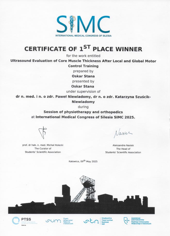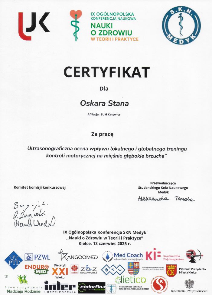 „Szuścik-Niewiadomy, K., Niewiadomy, P., Stana, O., & Nowak, M. (2025). Functional and structural effects of local vs. global motor control training: an ultrasound-based study on deep abdominal muscles.