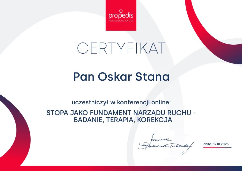 - konferencja : „Propedis: Stopa Jako Fundament Narządu Ruchu – Badanie, Terapia, Korekcja – 17.10.2023r;