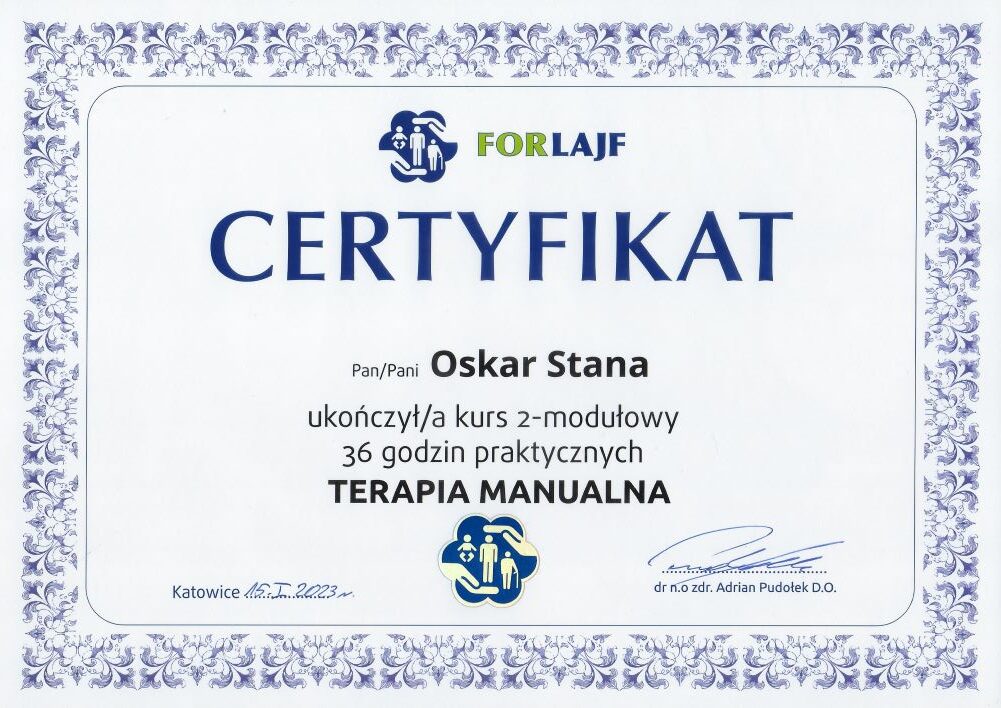 - szkolenie: „Terapia Manualna II – moduły 36h, Katowice, 15.01.2023r. – FORLAJF