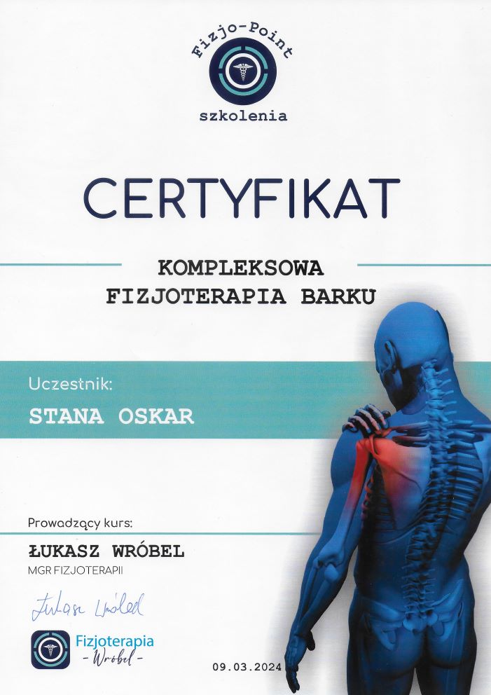 - szkolenie: „Kompleksowa Fizjoterapia Barku Katowice, 09.03.2024r. – Fizjo-Point Szkolenia
